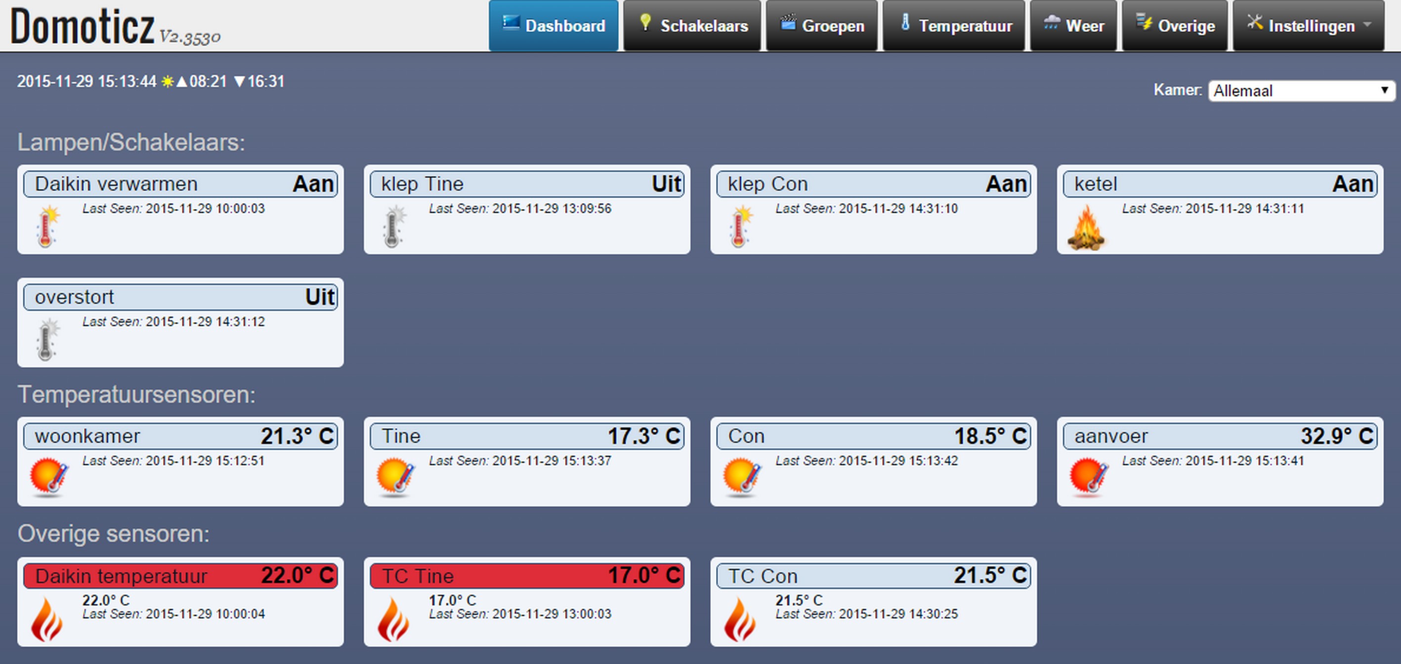 Dat is het geworden, Domoticz. Je koopt een Raspberry, voelers, kleppen en nog wat hardware, je legt een