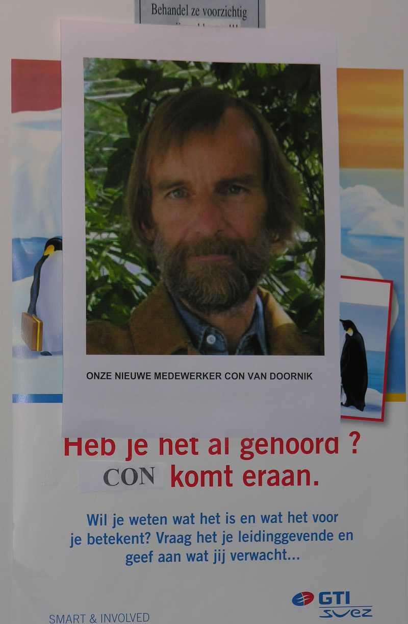 19 jaar geleden werd ik door Gerard Rietdijk nog wel eens Catweazle genoemd . . . . . . . 1 juli 2008 (inmiddels maart 2009) Mijn naam is Con, je weet wel, die OBS-er in Nieuwegein. Na 3 jaar op uitzendbasis werken bij GTI werd het tijd om palen te slaan, per 1 juli (2008) ben ik in vaste dienst, een grote dag, en gezien de hartverwarmende reacties niet alleen voor mij ... Mijn korte levensloop bestaat uit de volgende ingrediënten: Hulpmonteur (in de tijd van overschakeling van stadsgas naar aardgas), daarna servicemonteur in de mooie tijd dat er nog flink olie werd gestookt, tekenaar (19 jaar terug bij GTI), in de tijd dat er nog vogeltjes in een technische ruimte werden getekend op een hanenbalk ....., techneut in de tijd van de grote Peter Popov en niet te vergeten de meest veelzijdige Piet Borst en voor sommigen onder ons de altijd maar ondeugende (helaas gesneuvelde) Piet Bruins (ik zag hem soms als mijn vader). En wat te denken aan de volgende klassiekers; "Meneer" Jonker, Paul Somer, Gerard Rietdijk, Jo van Ooijen en vooral niet te vergeten de meest komische "Anthonie Vreugdenhil". Eigenlijk te veel om op te noemen dus laat ik het hierbij. Ik had toen moeite om weg te gaan bij GTI. Nu, 19 jaar later, ben ik “binnengesluisd” door Rob de Leeuw en ik moet zeggen dat ik daar geen seconde spijt van heb gehad. Sterker nog, ik had misschien nooit weg moeten gaan. Lyrisch? Nee! GTI was en blijft blijkbaar een gezellige club om voor te werken. |